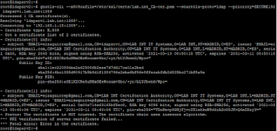 Es importante resaltar que, al utilizar las bibliotecas LDAP cliente del sistema operativo, el fichero de configuración LDAP (/etc/ldap.conf o /etc/openldap/ldap.conf), debe estar correctamente configurado. Para poder iniciar correctamente la conexión StartTLS es muy importante la opción TLS_CACERT. Esta opción debe establecer la ruta completa al fichero que contenga el certificado de la CA que haya firmado el certificado usado por el servidor OpenLDAP.
